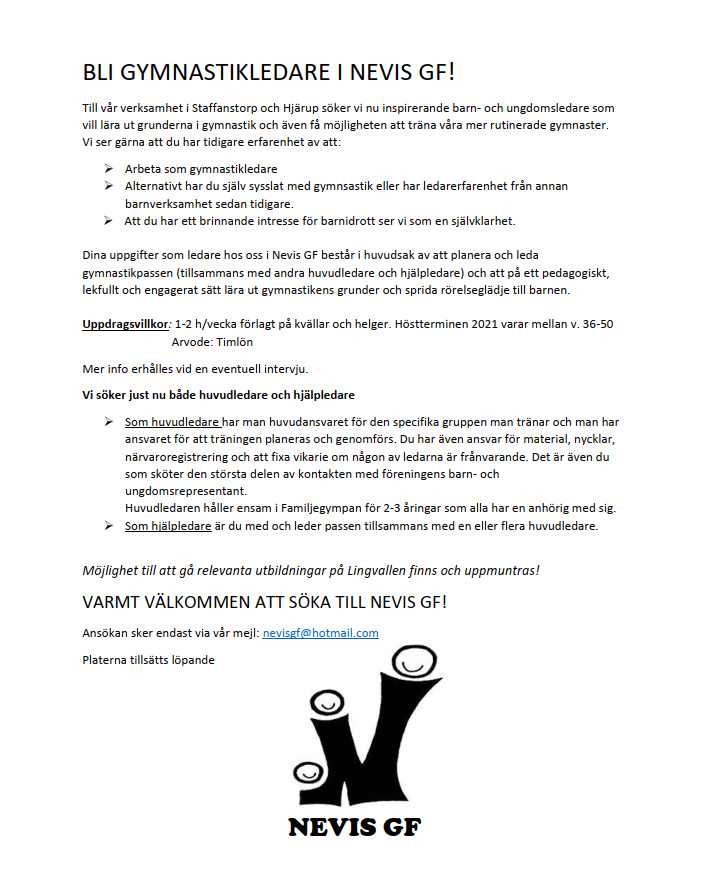 Bli Gymnastikledare i Nevis GF