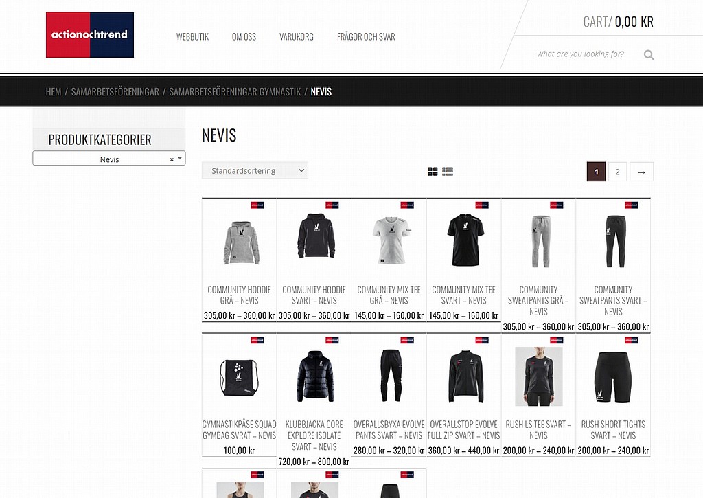 Urvalet av produkter är stort och storlekarna går från stl 110/116 upp till vuxen på de flesta plagg.